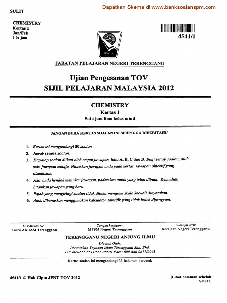 Kimia Kertas 1 Pep Pertengahan Tahun Ting 5 Terengganu 2013 Pdf